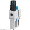 过滤器-减压阀-油雾器组合体, 12 bar 的zui大输出压力, 40 μm 过滤精度, 带压力表, 减压阀调节头可锁定, 塑料杯罩外套塑料杯罩保护, 采用手动冷凝水排放装置, 气流方向: 从左到右.