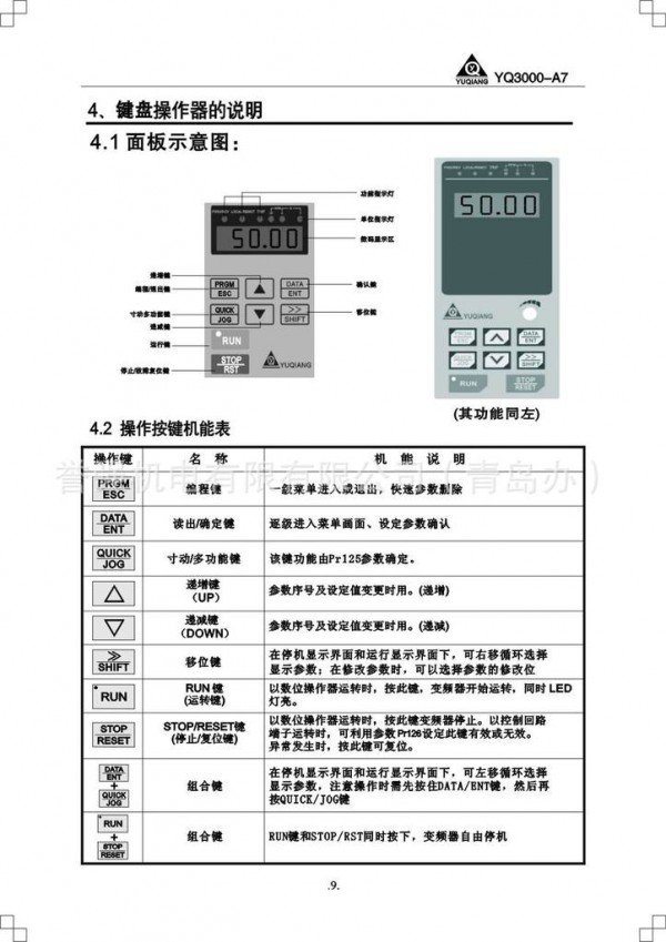 13、QulCK/JOG功能:用户可自由定义多功能快捷键,通过设定此参数可以快速浏览修改后与出厂缺省值不同的相关功能代码;