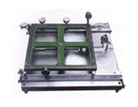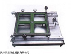 本仪器由支承平板、可移动的左支座和右支座组成一个直角坐标系。在平板上有三个等高支承销与陶瓷面砖类似外形和具有理想尺寸的标准板进行探测,并将仪表值调整至适当位置,并记下该示值。然后,以被测陶瓷面砖取代标准板,在不移动测量点的情况下,分别测出六项指标参数。左、右支座及中心测量支座可在平板上作平行移动,组成不同位置的空间座标,以适应不同规格尺寸陶瓷面砖的测定。