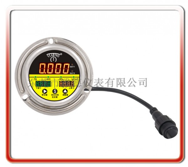 60MM轴向带边LED三色三屏数显式智能控制压力表是一款高性能智能数显压力开关,内建充油式压电电阻感测器,特别针对测量液体与气体所设计。搭配新温度补偿技术,结构坚固、操作简易,且具有±0.5%F.S优异之准确度,压力测量范围0~7500psi。