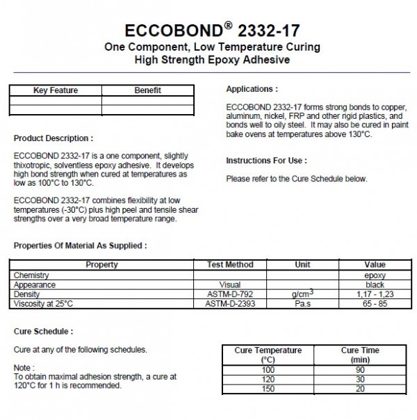 | 粘合材料类型 | 环氧,电子元件 | 工作温度 | 180 | 粘度 | 14000 |