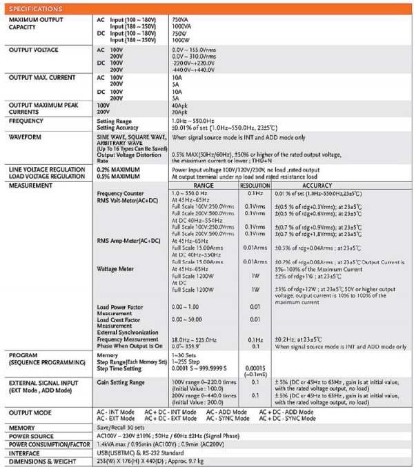 * 输出能力:750VA(对于100V交流输入)/1KVA(对于200V交流输入)
