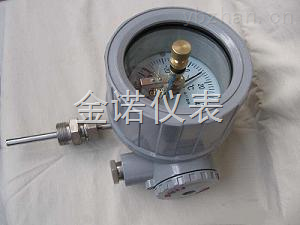 防爆电接点双金属温度计产品性能符合BG3836.1-2000《爆炸性气体环境用防爆电气设备 部分:通用要求》及GB3836.2-2000《爆炸性气体环境用防爆电气设备 第2部分:隔爆型电气设备"d"》的标准。防爆电接点双金属温度计带有电接触装置—即机械电接点。当被测介质温度变化时,自由端上的细轴及转向传动机构带动指针及动触点转动,在标度盘上指示出温度的变化值,当其与定触点(上、下限定触点)接触或断开的瞬时,使电路系统中的继电器及接触器动作,以达到自动控制和报警的目的。