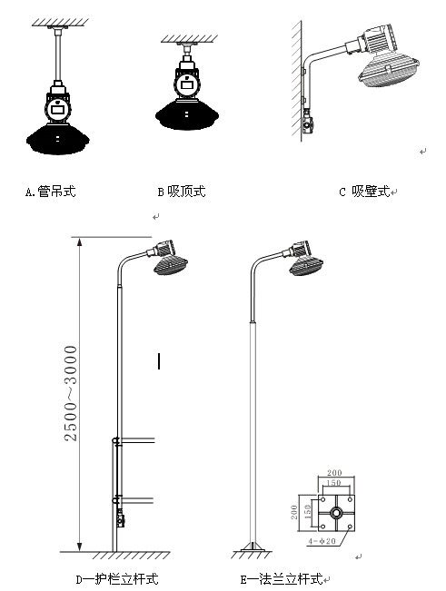 SBD1102 管吊、吸顶、吸壁、立杆多样式安装方式,适合各种场合安装