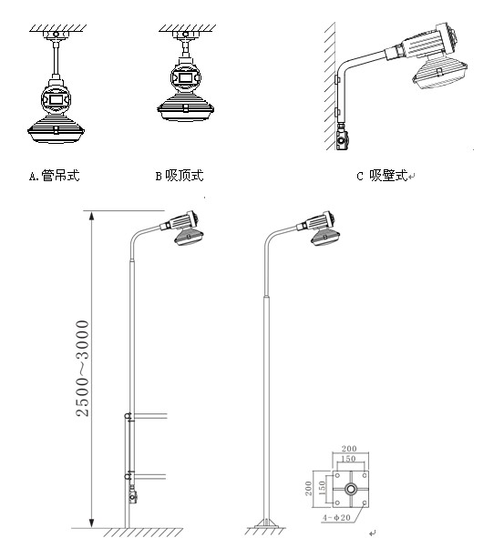 SBD1103 管吊、吸顶、吸壁、立杆多样式安装方式,适合各种场合安装