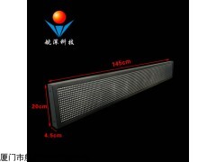 基本功能: 1. 点间距6mm。 2. 外观尺寸:定做 3. 工作电压 :DC9-36V 4. 工作电流:<3A 5. 点阵尺寸: P8/P10 6. 显示颜色: 红色/黄色(中间红两边黄) 7. 驱动方式:恒流/恒压驱动 8. 显示字数:16点阵 9. 安装支架:箱体悬挂式 10. LED亮度:20000流明 11. 接口方式:CAN接,RS232/485,9600波特率 12. 显示内容:线路牌,转向灯提示,刹车提示,停止运营等 13. 分辨率高16点、长128点。 14. 单行显示8个汉字或ASCII字符,可存储256条信息,每条信息128个汉字或ASCII5、 15. 完全满足车载宽电压要求,电压范围可达DC9V-48V; 16. 标准通用接口协议RS232/RS485。 17. 播放节目的优先权功能:按优先的先后顺序为:一级是报警信息,第二级是即时信息,第三级是广告信息,第四级是默认信息如招商等。 18. 支持在线软件升级功能,方便产品性能的更新。 19. 实现远程和ACC开关机功能(停车熄火后可实现关屏功能减少耗电) 20. 实现信息生命周期设定功能(可设定各条信息的发布时间) 21. 使用铝型材外壳整体成型的超薄设计,美观,坚固,利于散热,并便于维护。 22. 采用可活动式安装支架,方便安装维护。 23. 采用代码式控制协议,控制数据流量小,适用于GPRS/CDMA等网络的远程控制,可以联接GPS设置实现无线远程控制。 24. 采用恒流LED驱动方式,确保了产品亮度的一致性。 25. 采用多重安全性能保护措施包括电源输入端的过流保护、内部电路的自动保护,确保汽车电路的安生性和设备的可靠性。 26. 具有倒车自动关屏功能:出租车倒车时,自动关屏,以保证司机倒车的安全性 27. 播放时段设置功能:每天可以分24个时段定时播放,时段可以到秒。 28. 可调节播放速度和显示停留时间。 29. 具有上电延时功能,失控保护功能和心跳信息回传功能。 30. 与报站器同步显示站名。