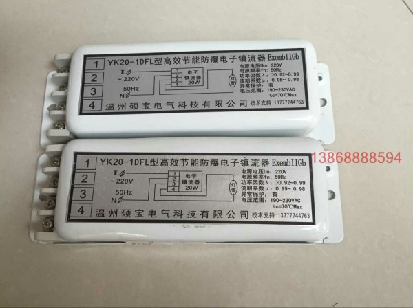 (4)YK20-1DFL防爆电子镇流器价格/批发价功率因数高。符合标准的20W.40W以上的荧光灯,其功率因数高于0.95。