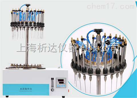 上海析达仪器有限公司研发设计、生产的圆形水浴氮吹仪XD-DCY-24Y是利用吹扫捕集技术,同时对样品进行控温加热,通过氮气等惰性气体快速、可控、连续地吹到样品表面来达到样品溶液快速无氧浓缩。该方法具有省时、便捷、准确的特点。广泛用于食品安全、医药、农药残留检测、临床药代等领域。