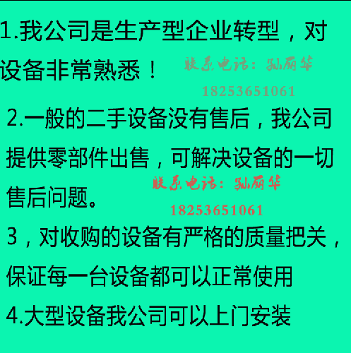 乾正机械是诸城市的一家专业经营二手设备买卖的公司,主营范围二手碳钢、不锈钢单层、双层杀菌锅、真空滚揉机、斩拌机、48针72针 120针注射机、灌肠机、打卡机、搅拌机、甩干机、绞肉机、切丝机、切片机、真空包装机、拉伸膜真空包装机、夹层锅、反渗透水处理等各种食品加工设备,品种齐全,价格合理。,所以说从我们这里买到的机械是有售后的。机械行业不同于其他的,从个人手中购买没有售后保障,也无法评估,风险是很大的。