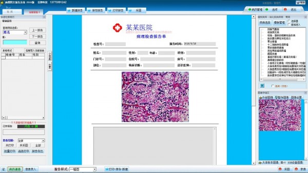 病理图文分析系统 组织 细胞学 图文报告影像工作站软(巨渺科技)通过高分辨率摄像系统实现图像的采集,通过丰富的诊断辅助书写系统,帮助医师快速完成图文一体化报告的输出。以及对病历资料的管理、查询、统计等功能。软件突出特点:简洁、灵活、稳定。