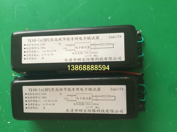 (7)YK40-1xDFL40w一托一防爆电子镇流器噪音低。电子镇流器噪音可达35db以下,人们感觉不到噪音。 选用防爆电子镇流器时,要有具体的型号,比如,YK40-1DFL防爆电子镇流器或40W一托一单脚专用防爆电子镇流器