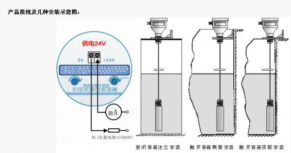 杆式(传感器装在底部,直接接触液体介质) |