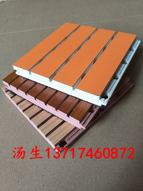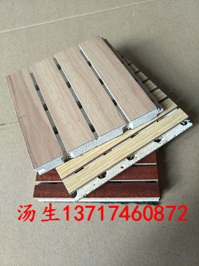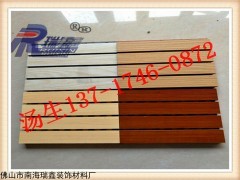 槽木吸音板、防火槽木吸音板批发厂家——佛山市南海瑞鑫装饰材料厂生产的防火孔木吸音板有贯通于防火密度板正面和背面的圆柱形孔眼, 在防火密度板背面粘贴具有透气性的背覆材料和能吸收入射声能的吸声材料等组台而成。吸声机理是材料内部有大量微小的连通的孔隙, 声波沿着这些孔隙可以深入材料内部,与材料发生摩擦作用将声能转化为热能。多孔吸声材料的吸声特性是随着频率的增高吸声系数逐渐增大,这意味着低频吸收没有高频吸收好。