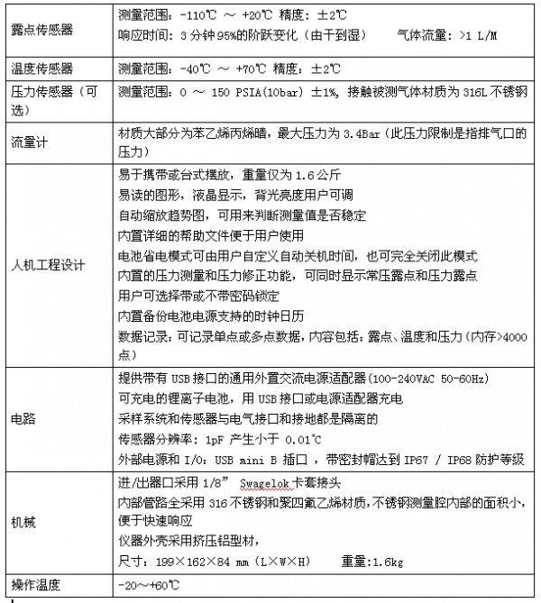 D P T-600便携式/台式露点仪是采用的纳米微孔金属氧化膜露点传感器生产的现场露点分析仪,能够在-110℃~+20℃的露点温度范围内快速准确地测量气体的水分含量。