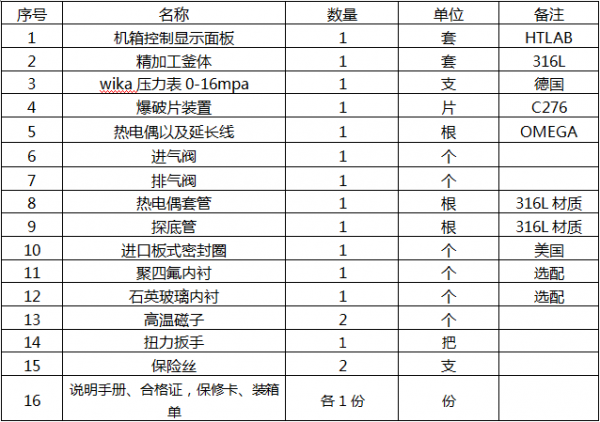 北京霍桐仪器 HT-10C0微型高压反应釜纯进口优质品牌配件: 1、德国原装进口wika径向压力表 2、美国OMEGA k型温度传感器 3、哈氏合金防爆膜等优质进口配件