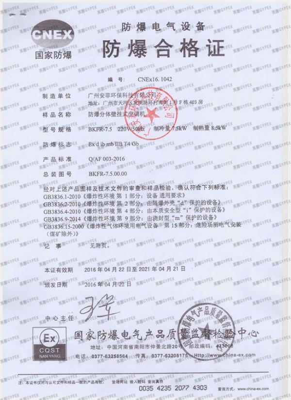 全系防爆空调系列防爆标志为Ex d ib mbⅡBT4。