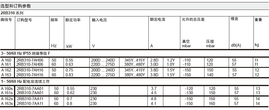 | 吸入压力: | -160 | (mbar) |