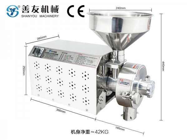 善友牌磨粉机:五谷杂粮磨粉机整机由奥体式不锈钢精铸,外观精美、整洁大方。
