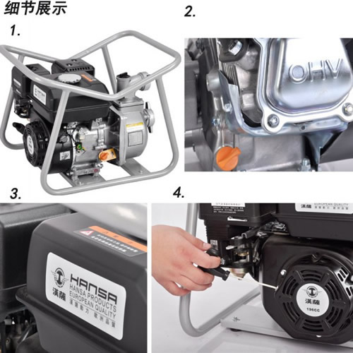 2寸小型汽油自吸水泵售价省油:发动机采用德国汉萨动力,优越的发动机带给您不一样的优越性能; 轻便:结构轻巧,便于移动,让您摆脱老式柴油抽水机的笨重问题; 操作简单:简单大方的外观设计,通谷易懂的操作说明,让您在短的时间内掌握机组的操作,投入到生产使用中。