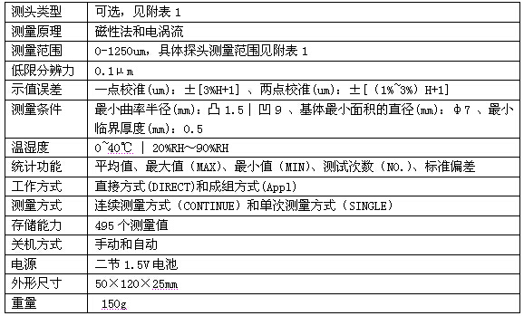 非磁性金属基体上非导电覆盖层的厚度(如铜、铝、锌、锡等基底上的珐琅、橡胶、油漆镀层)。可进行零点校准及二点校准,并可用基本校准法对测头的系统误差进行修正