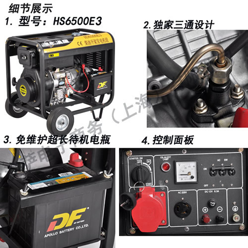 5kw三相电启动柴油发电机售价汉萨动力柴油发电机配有AVR自动电压调节器,在加减负载的同时电压波动在1%左右,油路开关设计,防止老化漏油,配有独特设计的消声器降低噪音。