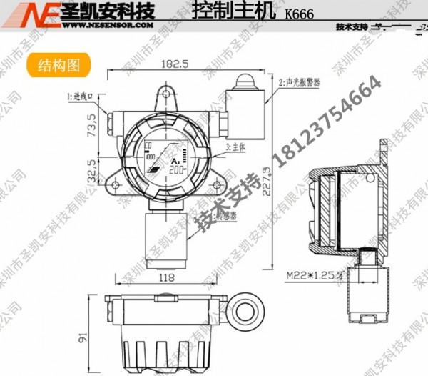 ④报警信号输出:现场声光报警,报警声音:<90分贝(选配)