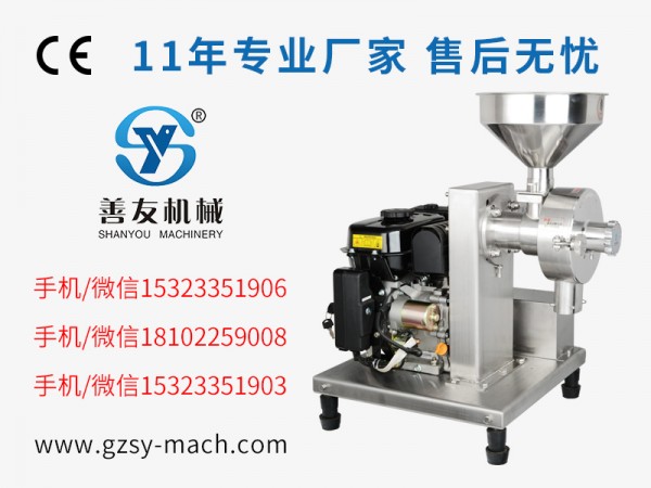 广州市善友机械设备研发制造了汽油机磨粉机,即“汽油发动机+磨粉机”,不需连接电源,通过汽油发动机传动,适合流动式磨粉作业。本机可通过控制发动机油门的大小,调节转速。