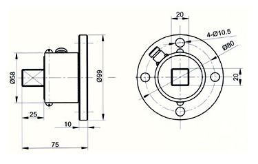 · 静态扭矩测量。一端为外四方键连接,一端为法兰盘连接。