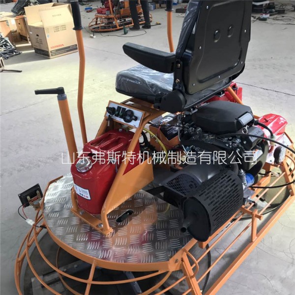 驾驶型的操作很大程度上降低了劳动强度,提高了工作效率,具有双盘,重量更大,对地面具有更好的压实效果,施工效率明显高于其它施工机器,可同时安装两张提浆圆盘,进行快速提浆,机械式转向操作系统,反映灵敏,控制轻松自如,配备本田、百力通电启动发动机,提供强劲可靠的动力,操作稳定