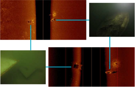 先使用低欧范围搜寻,550kHz工作时可覆盖海底300米条带的范围。标记潜在可能的目标物,第二步用高频率细致搜索被标记的海域,从而确认目标物的位置信息。