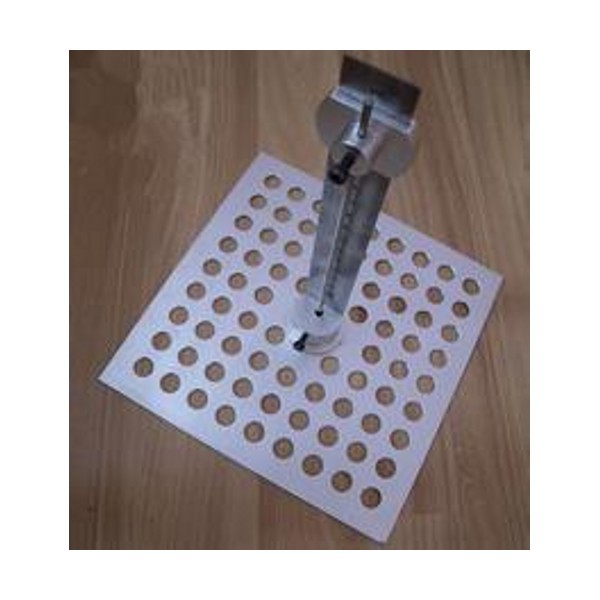 将被测试样平整放在硬质平板上,松开测针底部的拧紧螺母,将仪器轻放在被测试样上,慢慢将测针插入被测试样中,直至底部,看刻度尺指针滑块平行处所指厚度,即为被测试样厚度。