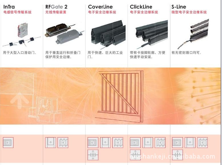 注意事项:根据工作频率,每间隔一段时间,需对安全边缘开关进行测试功能。要求橡胶带都必须装在铝合金支架内,不能脱开。安全开关属免维修件,内部元件受损时,使用者需更换掉它。