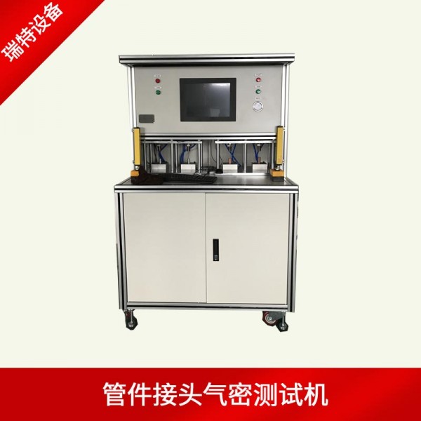 【深圳市瑞特检测设备有限公司开发的管接头气密性测试台】空调管气密性泄漏试验机设备广泛应用于:三通、弯头、直通、异型管产品等产品密封测试,泄漏测试的产品。