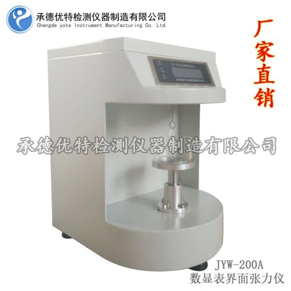 型号JYW-200A和型号JYW-200B的区别:JYW-200A是由主机直接控制进行试验,精度为0.1mN/m(毫牛/米),此型号实用性较强;JYW-200B在主机控制的同时,增加了电脑软件控制,精度为0.01mN/m(毫牛/米),电脑软件上可显示,保存,打印张力的曲线和试验数据报告,其功能更。