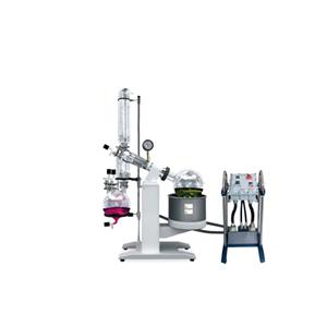 大容量、大口径旋转蒸发瓶,蒸发面积大;减压置于浴槽中,边旋转边加热,使溶液扩散蒸发。可用于生物、医药、化工、食品等领域的小试、中试和生产。可与循环水式多用真空泵、隔膜真空泵、低温循环(真空)泵、循环冷却器、恒温循环器、低温冷却液循环泵等配套组成系统装置。
