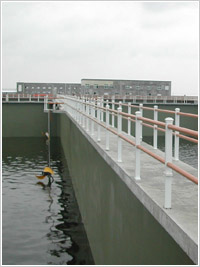 带水作业,反压堵漏配方 带水作业,反压堵漏。引自国外高科技防水堵漏技术,采用进口高分子防水材料,将配兑的混合浆液反压注浆,遇水膨胀速凝,该弹性材料用于隧道、地下室、人防、地铁、池槽、热力井室及军事坑道的沉降缝口长期抗渗防水堵漏。被堵漏施工过的裂缝口,以后再出现沉降或错位裂缝也同样不会漏水。 在污水处理厂水池施工的过程中,可以采用高压灌注的方式进行防渗漏,高压灌注主要是采用一种黏度较低、单组分合成高分子聚氨酯材料,主要的形态是液体,当与水相遇后会发生交联反应,产生很多泡形成多元网状的封闭弹性体。当其被高压灌注到混凝土裂缝结构中的时候,会将所有的裂缝填满(含有肉眼不能看见的 0.015mm 的微小缝隙),遇到水后,会产生交联反应,释放大量的CO2,产生二次渗压,这时候高压灌注以及二次渗压会同时将弹性体注入到砼中,并将所有的缝隙填满,有效地达到防治渗漏的目的。在施工的过程中,观察主要渗漏孔的压力,如果孔洞的水流不急、压力不是很大的时候,可以采用快速干堵漏剂注入灌浆止水头里面,也可以根据现场施工情况将渗水孔中打入木楔之后再用快速干堵漏剂堵住渗漏洞口,当结构相对稳定的时候再将木楔钻开然后安装止水针头,用专用的内六角扳手将其拧紧,使灌注头周围与钻孔之间没有相应的空隙。如果出现渗漏的情况相对严重,就需要在渗漏的部位安装不同长度的止水针头,这样可以使灌注浆从深层到浅层依次进行灌注。使用高压灌注浆进行试压,将灌注浆内的液体灌注到孔洞内。每个孔洞逐个进行灌注。当两个相邻的孔洞出浆之后,保持压力 3 ~ 5min 就可以停止对孔洞进行灌注,改为对相邻的孔洞进行灌注。等到将所有的孔洞都灌注完成之后,需要再从一个灌注孔进行二次灌注,这样可以有效地保证压力zui大化。水池墙面灌注的时候需要从上向下进行,灌注的时候需要注意的是不能灌注的压力不能超过砼的承受能力。灌注完成之后的一天内,需要进行确认,保证水池不渗漏,这个时候就会去掉外露的灌注头,清理外溢的灌注浆液。通过实践可以证明,高压灌注技术可以有效地控制水池的渗漏情况。在涂刷型聚氨酯能够在水池的潮湿层上带来一定的黏结成果,并可以有效地从根源上控制污水渗漏到微小的裂缝之中,保证建筑物。