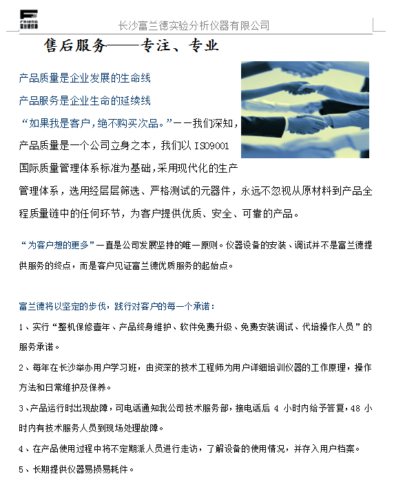 富兰德为构筑企业长远竞争力始终致力于新产品的自主研发,提高产品附加值,提升品牌美誉度作为企业生命力延续的保障。我们致力于打造分析仪器领域的全球知名品牌,成为一家受人尊敬的仪器和服务的提供商。