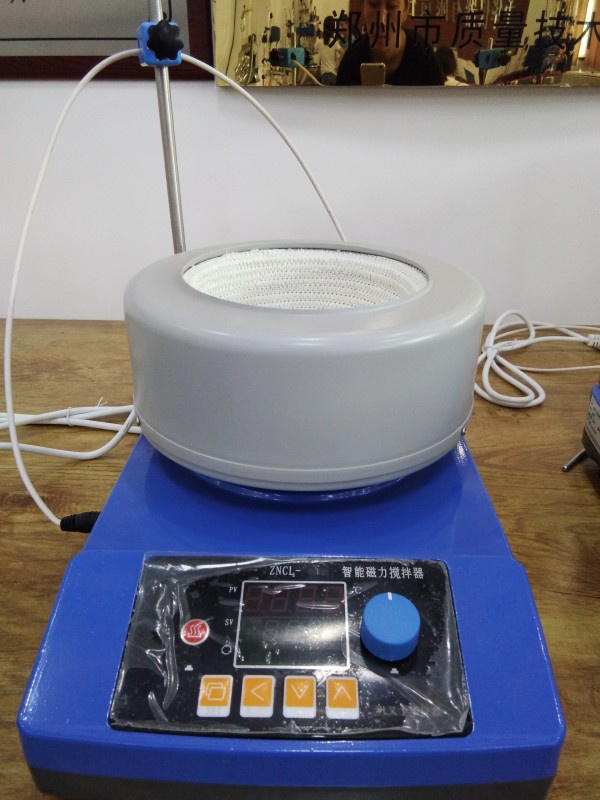 1.将立杆固定在搅拌器后上方螺丝孔内(注意:有顺丝和倒丝),调整好十字夹高度,用wanneng夹将反应瓶固定好,放入合适搅拌子,向锅内注入适量的水或高温油,。