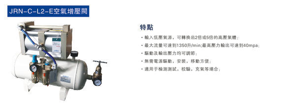 JRN-C-L2-E空气增压阀是台湾玖容生产的增压阀型号,输出低压气源,可转换出2倍或5倍的高压气体。