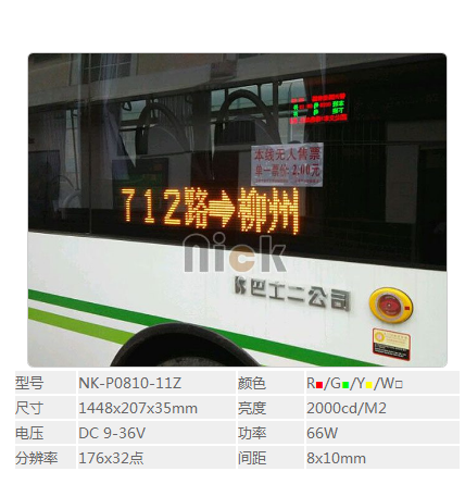 深圳尼克光电科技有限公司(商标NICK)成立于2009年(周经理18818685890),是一家专注于中高端公交车LED电子路牌、公交车报站器的研发、制造与销售为一体的高新技术企业。