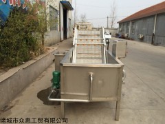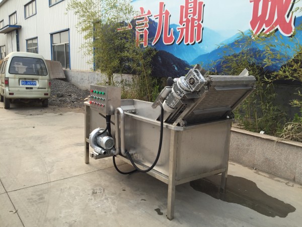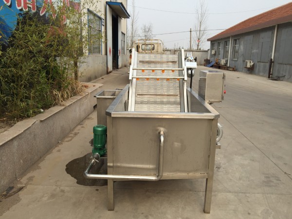 气泡清洗机是大枣,蔬菜,水产生产线中的重要产品,主要用于大枣,蔬菜,水产的清洗。气泡清洗机的原理主要是利用箱体前部分设备箱体中注适量的水,经过加热管将水温加热,原料在经过箱体时,会与气泡机和水的结合作用下做翻滚状态,并随网带不断向前推进,在出水面时,高端设有喷淋头,高压冲洗。
