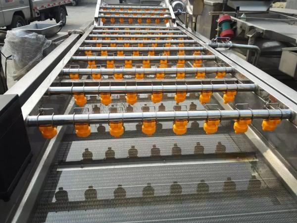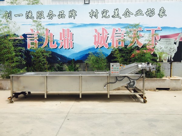 气泡清洗机是大枣,蔬菜,水产生产线中的重要产品,主要用于大枣,蔬菜,水产的清洗。气泡清洗机的原理主要是利用箱体前部分设备箱体中注适量的水,经过加热管将水温加热,原料在经过箱体时,会与气泡机和水的结合作用下做翻滚状态,并随网带不断向前推进,在出水面时,高端设有喷淋头,高压冲洗。