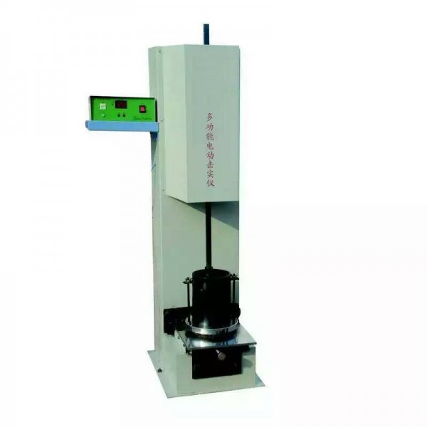 3、选择相应的击锤和击实筒,将预先配置好的土样分层倒入击实筒中,每倒入一层后,按下"启动"按钮,机器开始击实,计数器开始倒计数,当击实次数达到计数器上预置的次数时,机器自动停止,然后倒入下一层土,重复上述过程。其整个击实过程应按照土工试验规范中击实试验的要求进行。