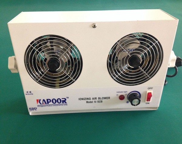 K-102B臺式雙頭離子風機的消除靜電的功能,可以解決因靜電作用引起的生產問題,如解決靜電引起的吸塵問題,塑膠製品加工時的粘合問題,靜電排斥引起的小零件跳躍問題等。