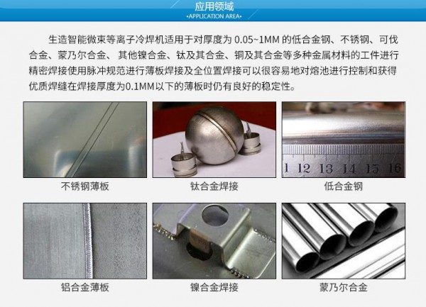 4. 特种金属的焊接 、如钛、镍、钼、镀锌板等特殊金属也能实施焊