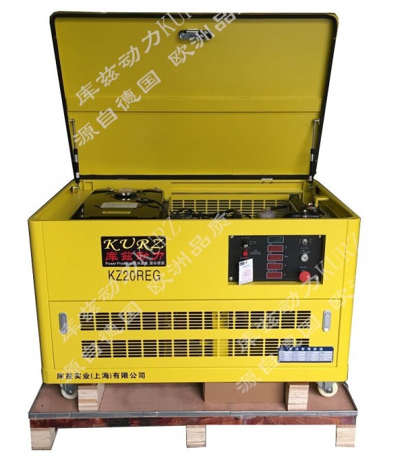 20KW静音汽油发电机KZ20REG可使用 汽油、天然气、液化气三种燃料。原装库兹动力,适用于公司应急、工程备用、广告公司LED显示器、机房、小区、别墅等地使用,的静音效果为您打造舒适的用电环境。产品含增值税17%, 可以全站全自动模式,即停电后发电机会在3秒左右自动启动,来电后会立刻停止运行,转向正常输电电路,发电机配置有:机油安全警报、汽油安全警报、电压稳定 警报、漏油警报、漏电警报、电压过高警报、超载自动警报器、超载自动跳闸器等一系列安全设施。