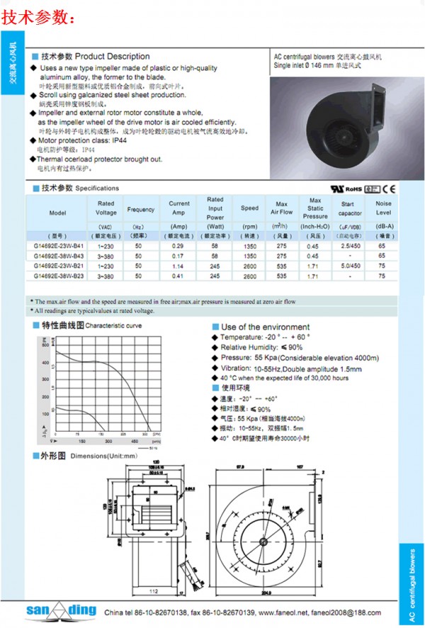 三鼎 sanding 品牌G13392E-38W-B23是一款离心式鼓风机,该风机采用优质铝合金材质,耐磨、防腐,低噪音风机,适用于排烟通风,风机电压被设定为380V。sanding 离心鼓风机 排烟风机