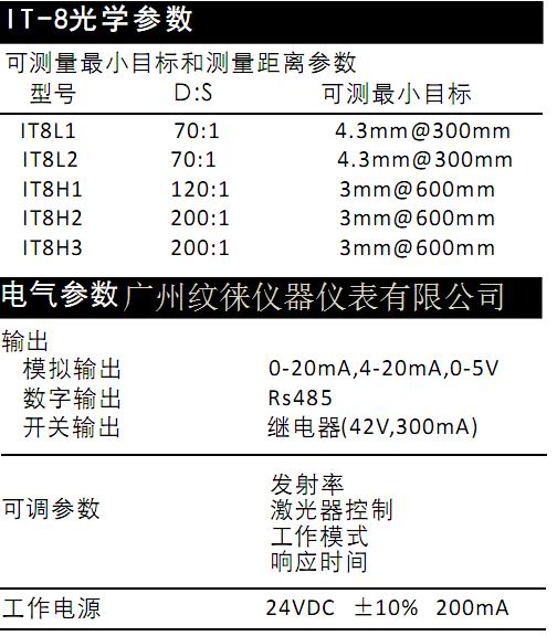 IT-8红外测温仪IT8L2红外测温仪基本参数: