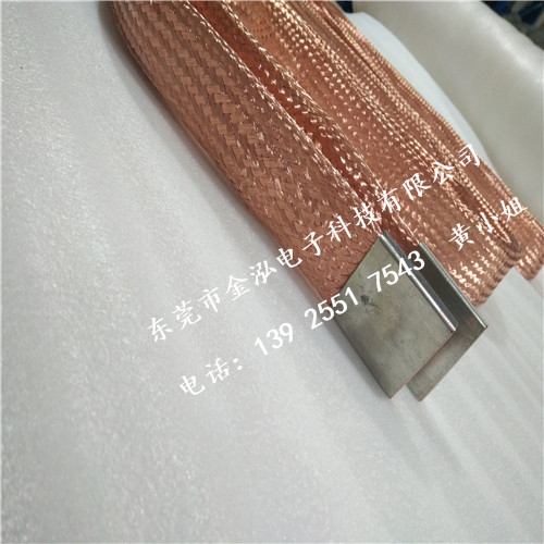 东莞市金泓电子科技有限公司 铜编织线软连接采用裸铜线、铜编织线,作为导体,两端采用铜端子,接头尺寸按客户要求生产,用冷压方法压制而成。可根据客户要求镀锡镀银。再通过特殊处理,做成高强度大电流软连接。