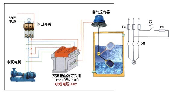 1. ① 使用黑色和蓝色的电线:浮球在上液位时,接点是不通的状态。浮球在下液位时,接点是接通的状态。